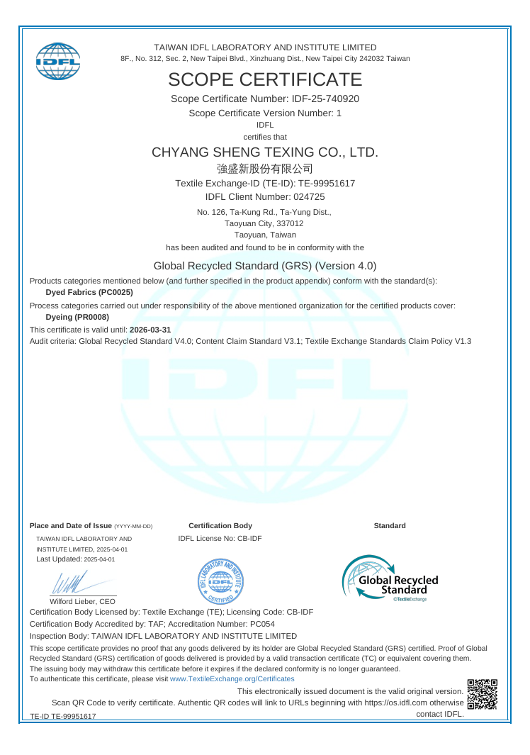 COPYRIGHT ©2018 強盛新股份有限公司 CHYANG SHENG TEXING CO.,LTD.